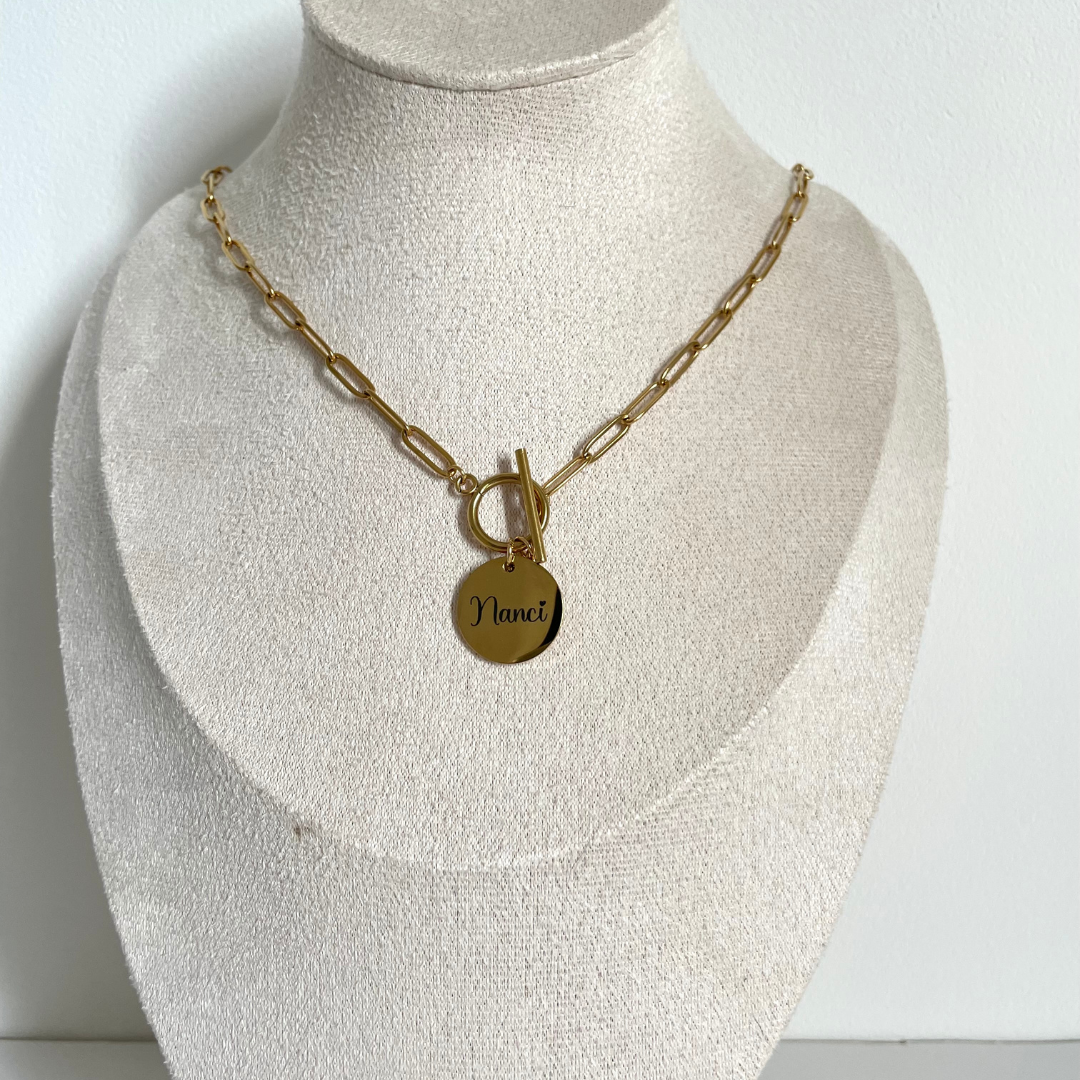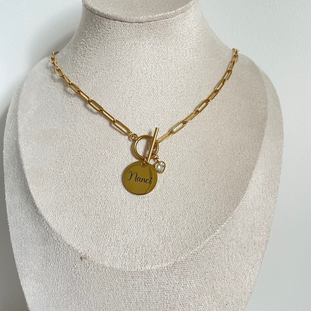 This beautiful round pendant is crafted from high-quality stainless steel, featuring a delicate engraving of your chosen name or word in an elegant script font. A sparkling cubic zirconia accent adds a subtle touch of brilliance, perfect for everyday wear or gifting.